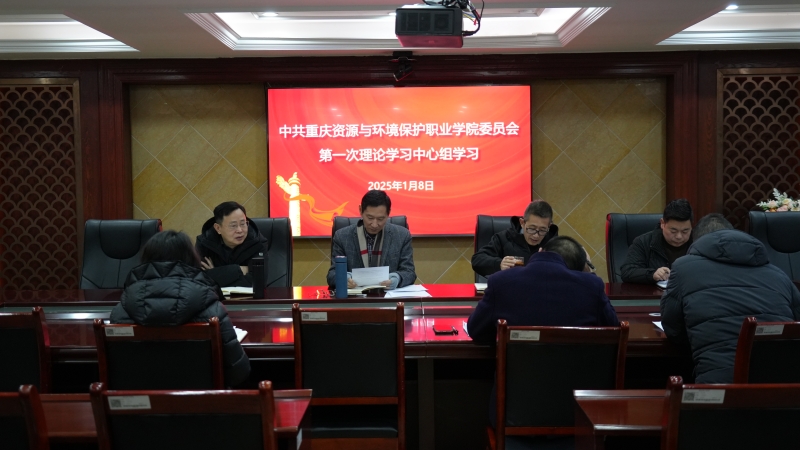 2025年1月8日,重庆资源与环境保护职业学院党委举行2025理论学习中心组第1次学习会暨2024年度民主生活会前专题学习会,学习领会习近平总书记关于党的建设的重要思想、关于党的自我革命的重要思想以及关于全面加强党的纪律建设的重要论述,习近平总书记关于全面深化改革的一系列新思想、新观点、新论断,习近平总书记视察重庆重要讲话重要指示精神,《中国共产党章程》《中国共产党纪律处分条例》等党内法规,以及