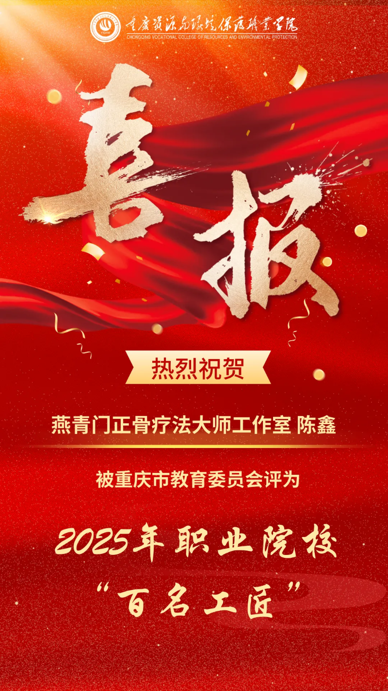 匠人、专业、深耕……要说2025年资环“工匠精神”的代名词,非“燕青门正骨大师”陈鑫莫属。她以追求卓越的态度,孜孜不倦的精神,将专业研究深耕,将学术精神发扬,被重庆市教育委员会评选入2025年职业院校“百名工匠”!陈鑫,国家级中医学术流派“燕青门正骨派”第九代传承人,国家级非物质文化遗产项目“燕青门正骨疗法”省级代表性传承人,重庆市五一劳动奖章获得者,被重庆市教委评为2025职业院校“百名工匠”