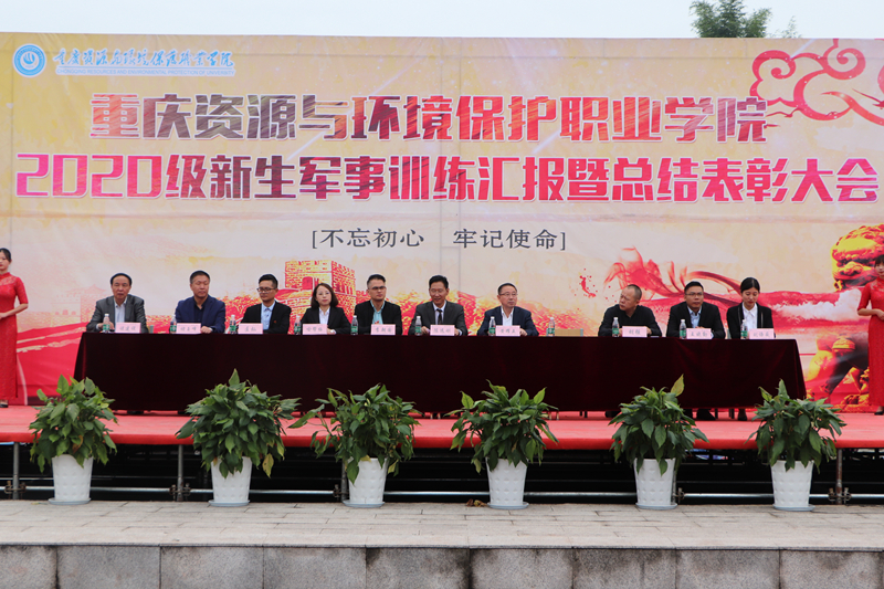 2020年9月30日上午,重庆资源与环境保护职业学院足球场上军歌嘹亮、红旗飞扬,我校在此隆重举行了2020级新生军训汇报表演。来自全国各地的新生们怀揣着对校园生活的向往和热情,以昂扬向上的精神态度迎接检阅,圆满完成了“入学第一课”。书记陈远刚,校长黄耀五,常务副校长李朝国,副校长谈建设,副校长喻帮梅,副校长胡强,及武装部领导、二级学院党支部书记,辅导员、军训教官和2020级新生2000余人参加了