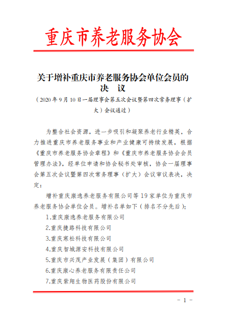 2020年9月10日,我校经过重庆市养老协会第一届理事会第五次会议暨第四次常务理事会议审议通过,正式成为重庆市养老协会会员单位。重庆市养老服务协会是由市内从事机构养老、居家养老、社区养老及与养老服务业相关的社会组织、企事业单位和相关的专家、学者等自愿组成的全市性、联合性、非营利性的社会组织。重庆市养老服务协会是在政府和养老服务业之间积极发挥桥梁和纽带作用,加强行业自律,推动全市养老服务业健康发展