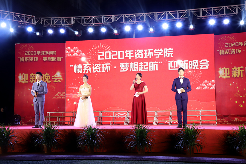 新景象、新时代、新征程,时逢金秋,我校于2020年10月29日举办情系资环•梦想起航校园迎新文艺晚会,欢迎来自祖国大江南北的学生来到资环学院这个大家庭。学校党委书记陈远刚,校长黄耀五,常务副校长李朝国,副校长谈建设,副校长喻帮梅,副校长胡强等领导以及各相关部门的领导和老师出席了本次晚会。2020级全体新生和2019级部门学生参加了迎新晚会,晚会由校团委承办。晚上7点整,晚会正式开始,现场氛围火热