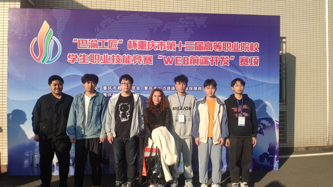 大数据应用技术专业是我校2019年开设的新专业,是与“重庆一夫当关科技有限公司”进行校企合作,由企业教师驻校教授实训课程校企共同打造的特色专业。2020年11月,在重庆市第十三届高等职业院校学生职业技能竞赛中,我校智能工程学院选派大数据应用技术专业的学生,参加了“Web前端开发”和“Html5交互融媒体”两个项目的比赛。在学校领导的大力支持下,在我校宾洁老师和校企合作单位驻校老师的精心指导下,同