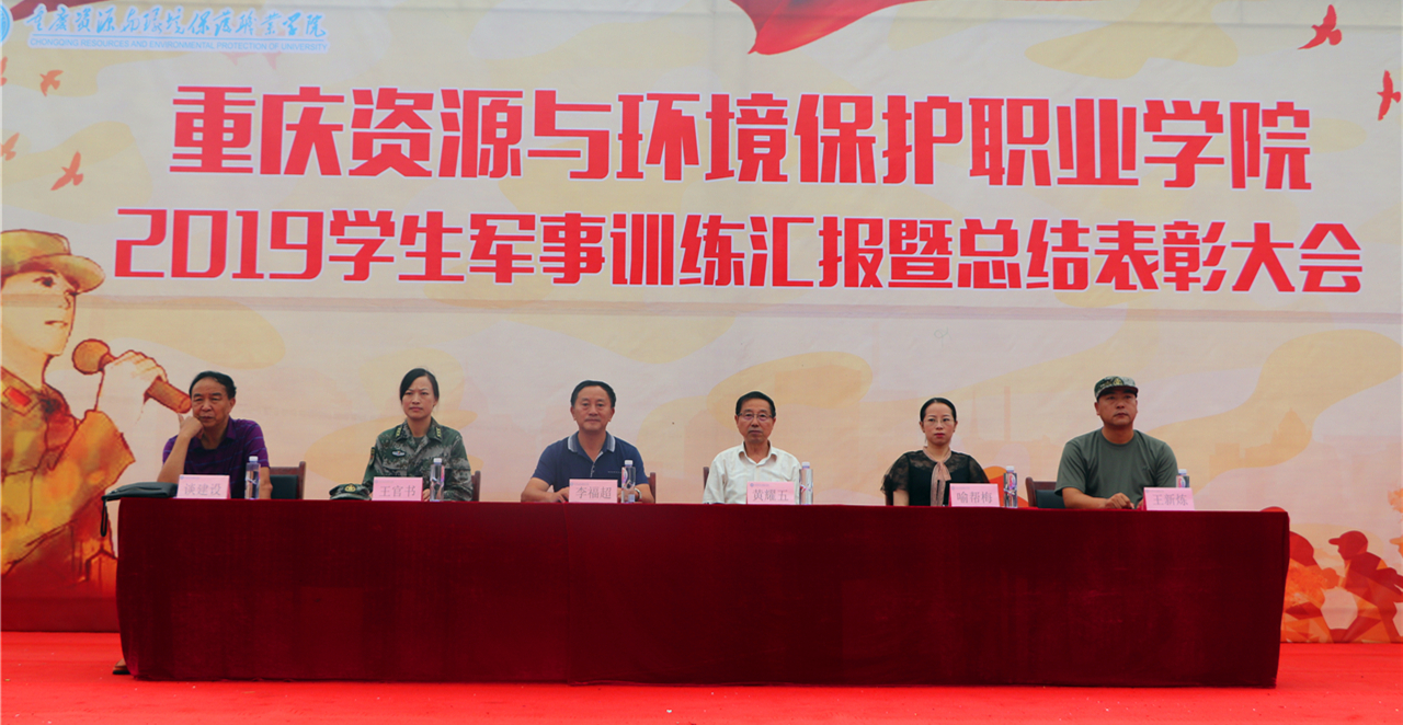 2019年9月7日上午,重庆资源与环境保护职业学院2019级学生军事训练汇报暨总结表彰大会在学院足球场隆重举行。在校校领导、有关部门负责人、辅导员、教官和全体受训学生参加大会。院长黄耀五教授检阅了军训方队。大会由谈建设副院长主持。在庄严的升旗仪式之后,阅兵式和分列式正式开始。全体新生气宇轩昂、热情高昂踏入阅兵区,响亮的口号更是响彻整个操场。来自9个方队的参训学员进行了分列式的表演,整齐的步伐,英