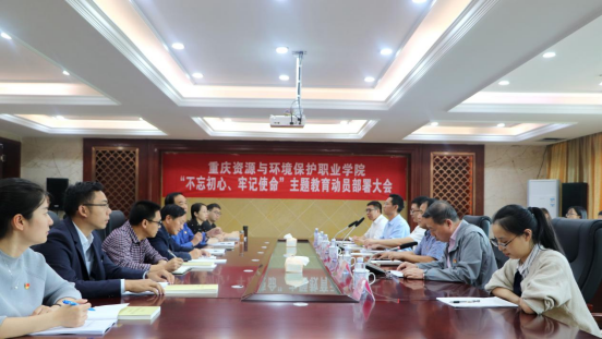 2019年9月18日下午2:30,重庆资源与环境保护职业学院召开“不忘初心,牢记使命”主题教育动员部署大会,全面启动主题教育各项工作。市委教育工委巡回指导第三组组长蔡理、副组长严平,指导组成员刘中胜、黄西出席会议,学校在家校领导、科级以上干部、各党支部书记、学校主题教育领导小组办公室全体人员参加会议,蔡理组长发表讲话,陈远刚书记作动员部署讲话。会议由院长黄耀五主持。陈远刚书记在会上指出,按照中央