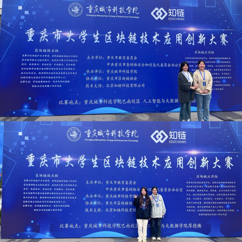 近日,2024年重庆市大学生区块链技术应用创新大赛在重庆城市科技学院顺利举行。此次大赛共有来自重庆地区高职院校35支队伍参赛。经过激烈角逐,我院管理与健康学院金融专业参赛队伍喜获重庆市(高职组)大赛三等奖两项。据悉,本次大赛由重庆市教育委员会、中共重庆市委网络安全和信息化委员会办公室主办,重庆城市科技学院承办,重庆市区块链应用创新产业联盟协办。区块链作为新兴数字产业,在产品溯源、数字人民币、智慧